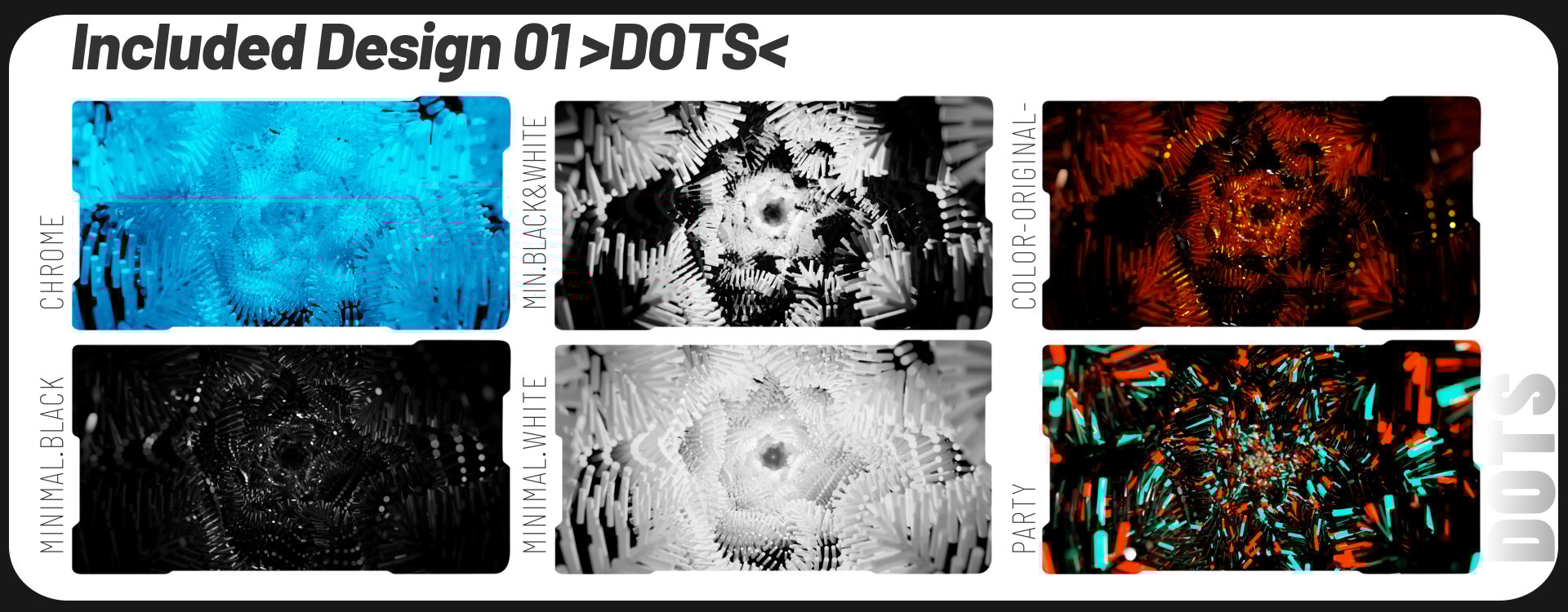 💥 511 looped videos included, from DOTS, GATEWAY, MAGIC and NEON.FLUX